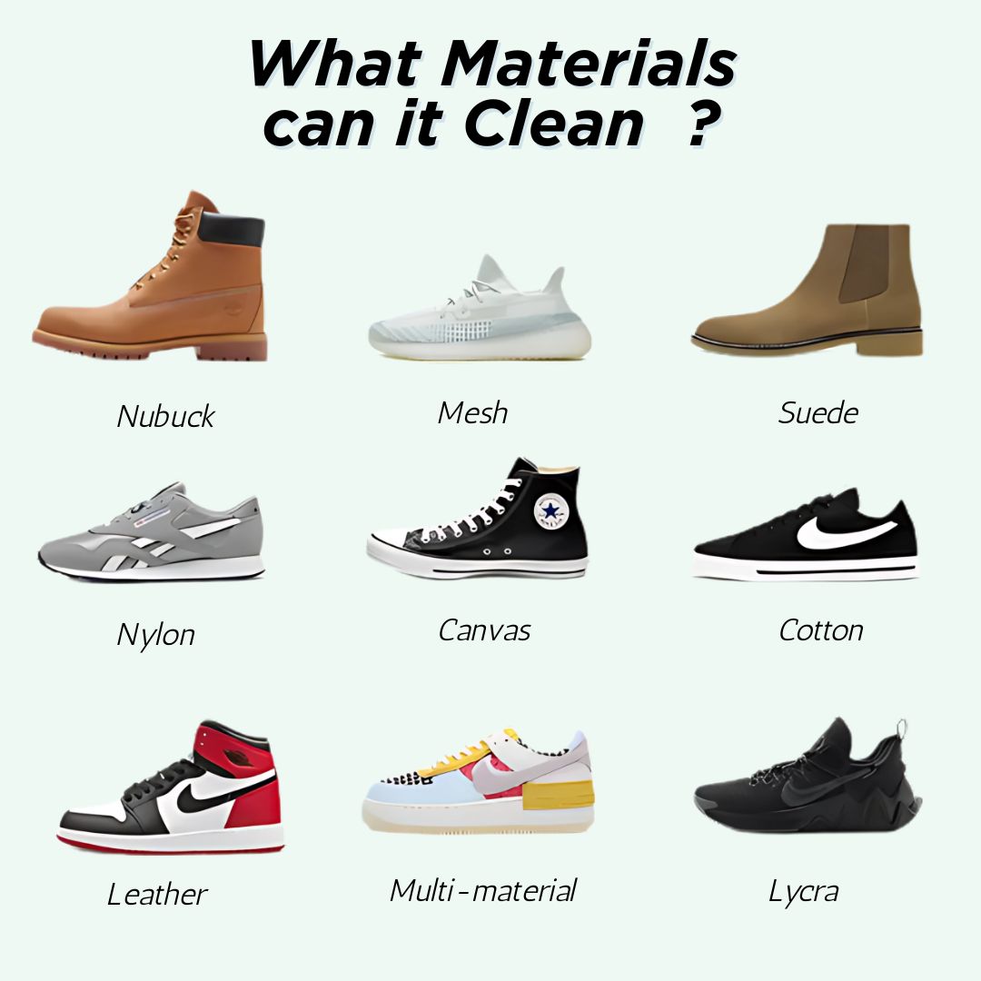 - Suitable materials: our complete shoe cleaning kit is suitable for Sport Shoe, Sneaker, Nubuck, Canvas, Knit, Trainers Shoe, Mid-sole, Out-sole, Eva-foam, Nylon.